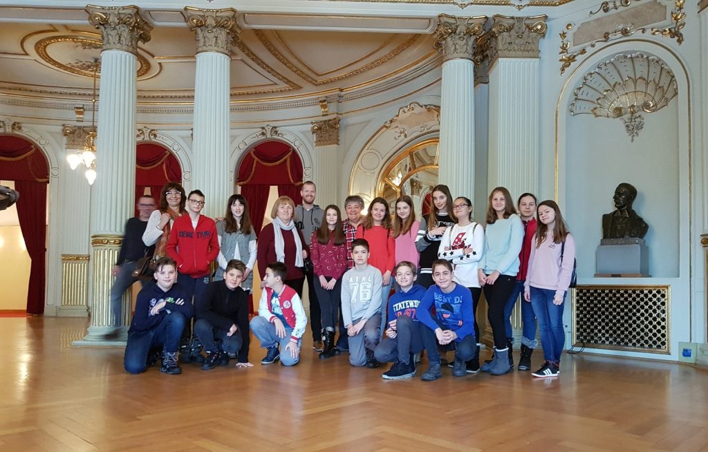 23.02.2018. učenici 6.A razreda, u organizaciji svoje razrednice i u pratnji asistenta Borne, bili u vođenom razgledavanju Hrvatskog narodnog kazališta. Obišli smo unutrašnjost kazališta, bili na svim katovima i ložama, zavirili smo i iza pozornice, prošli brojne hodnike…a iz podruma vodi jedan podzemni hodnik ispod ceste kojim smo došli i do zgrade baletne škole preko puta HNK-a i prisustvovali baletnoj probi!