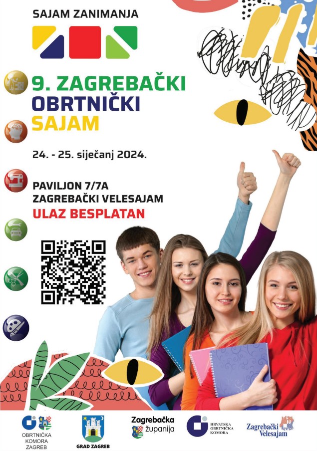 9. Zagrebački obrtnički sajam – sajam zanimanja održat će se 24. i 25. siječnja 2024. godine na Zagrebačkom velesajmu u paviljonima 7 i 7A. Ulaz je besplatan, a predstavit će se sve strukovne škole Grada Zagreba i Zagrebačke županije.