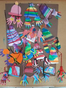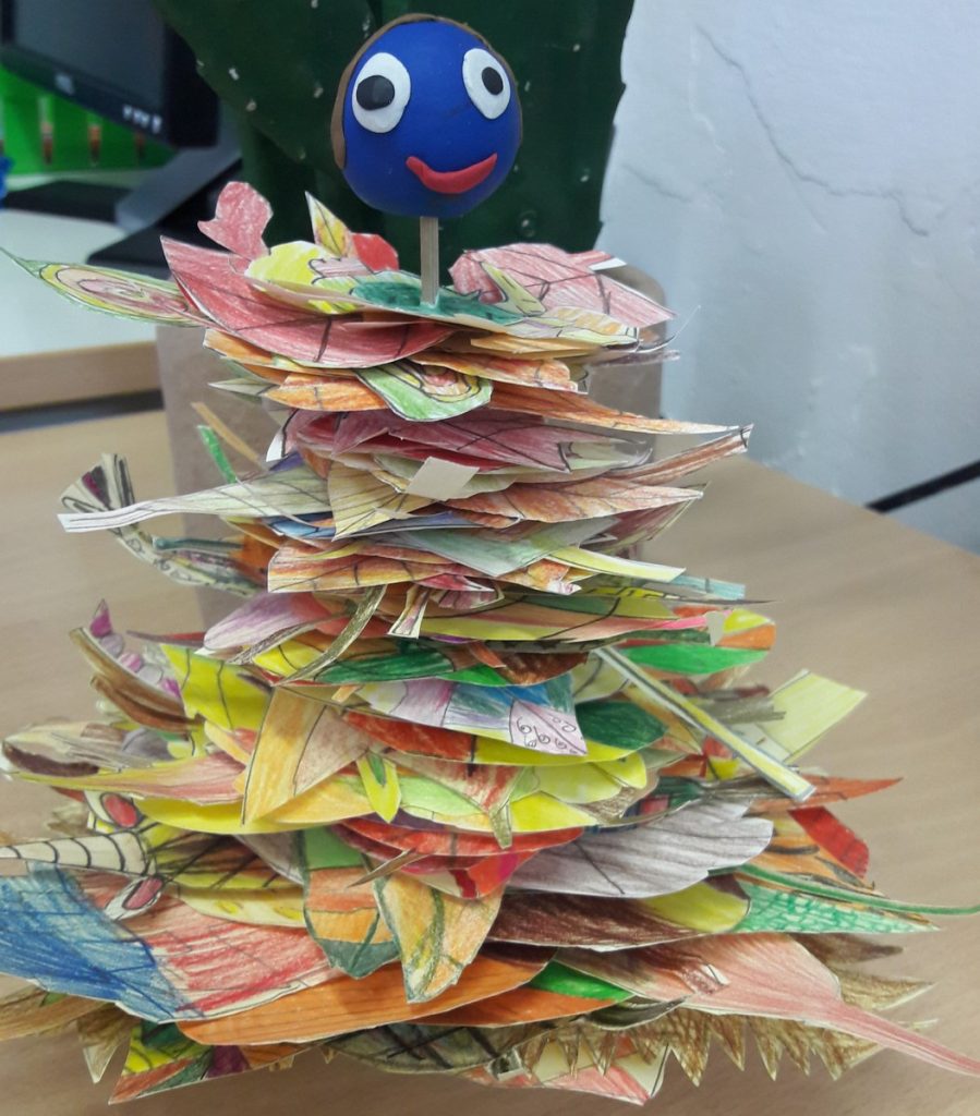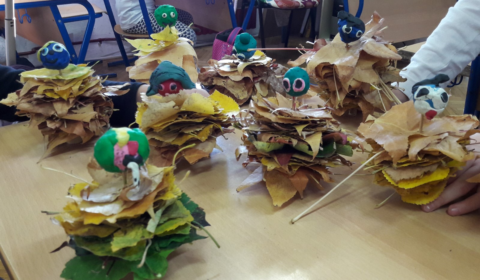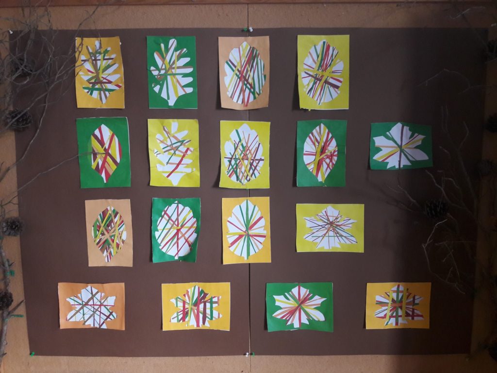 Izradili smo svoje jesenske listove, a pomoću pravog jesenskog lišća, kojeg smo sakupili na školskom dvorištu, izradili smo Jesenka.