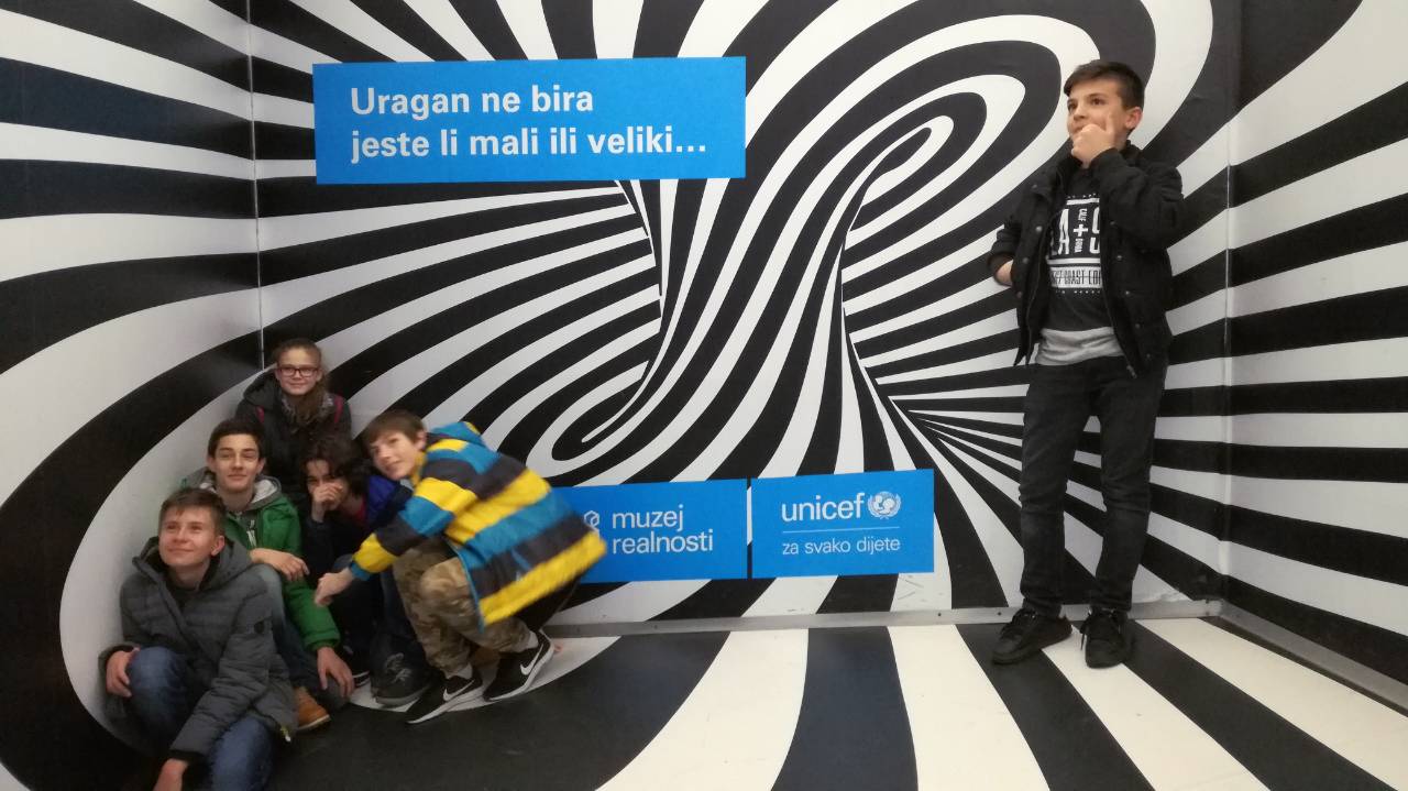Muzej iluzija ugostio je Muzej realnosti, koji organizira UNICEF. Kako djeca odrastaju bez bilo kakvih privilegija, posjetiteljima se nastoji približiti pomoću holograma, videa virtualne stvarnosti, optičkih iluzija, instalacija, fotografija, pripovijedanja. I naš 7.A razred bio je u posjeti da u predbožićno vrijeme još više osvijestimo koliko ima ljudi oko nas koji trebaju našu pomoć.