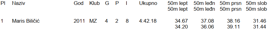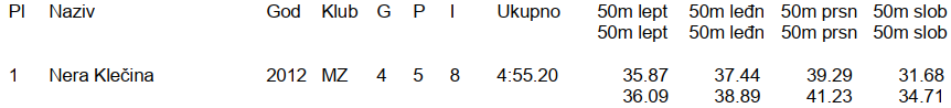 Nera i Maris osvajačice su zlatnih medalja za postignute rezultate u ukupnom zbroju vremena sve 4 tehnike koje su plivale (leptir, leđno, prsno i slobodno) na stazama 2 x 25 m.