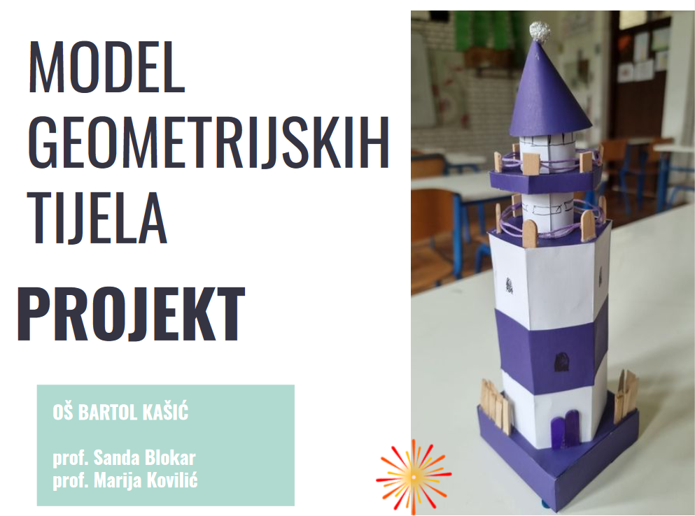 Učenici 8.a, 8.b, 8.c i 8.d razreda kroz projektni zadatak iz matematike pod nazivom “Model od geometrijskih tijela” izradili su autorske 3D modele. Sam projektni zadatak je obrade nastavne cjeline, prezentacijom svog modela objasnili su na koji način su izračunali obujam i oplošje svojeg modela koristeći naučeno. Učenici su iskazali svoju kreativnost, a stečena znanja su primjenjivali u svakodnevnom životu. Zadovoljeni su didaktički principi: zornosti, individualizacije, induktivno-deduktivan pristup i praktičane primjene.