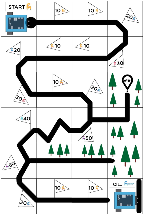 Staza je bila “skijalište” po kojoj je robot trebao samostalno proći prateći ispravnu liniju i izbjegavajući distrakcije.